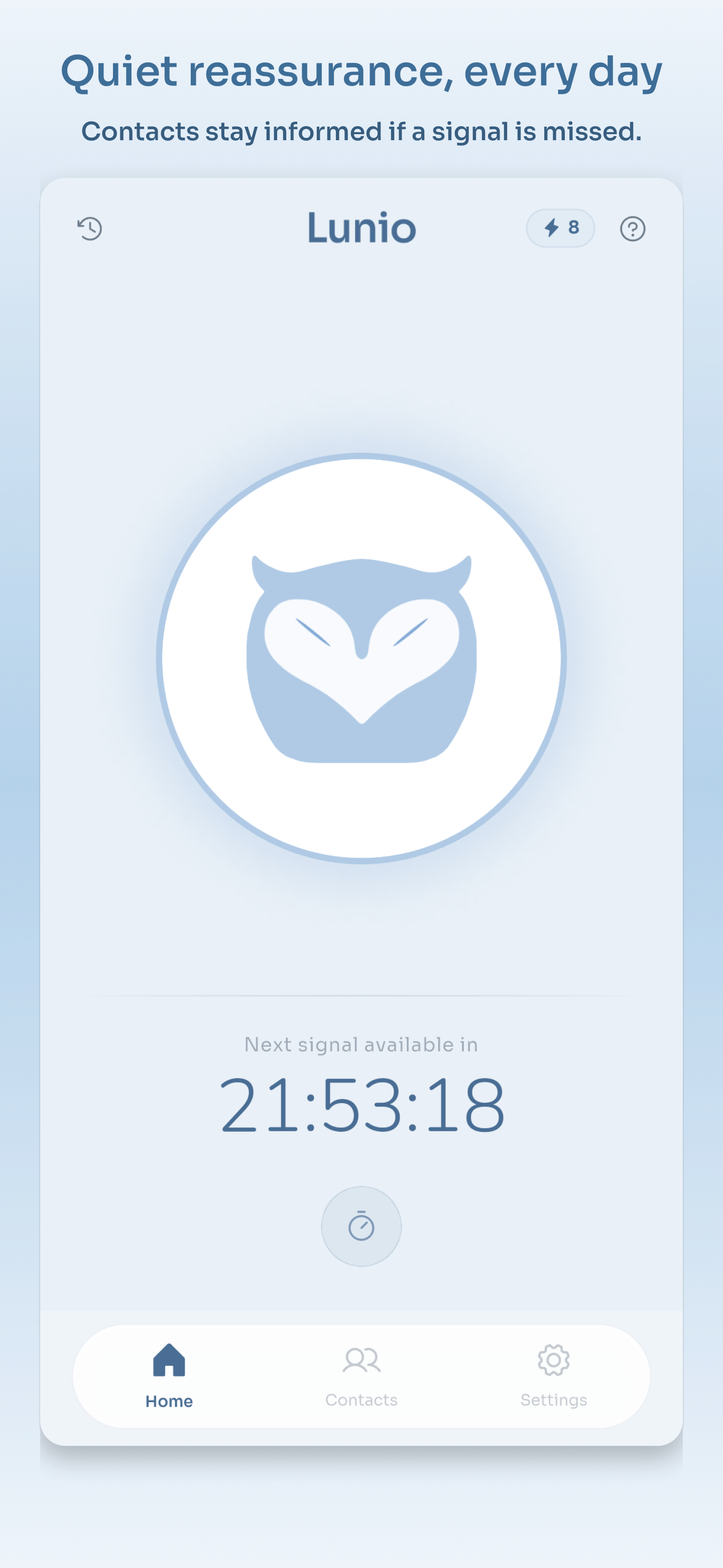 One tap a day. Automatic alerts when it matters. No GPS, ever.